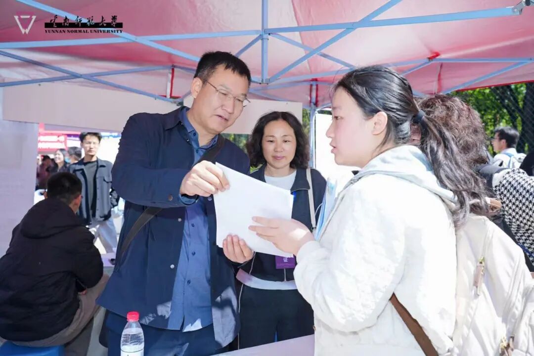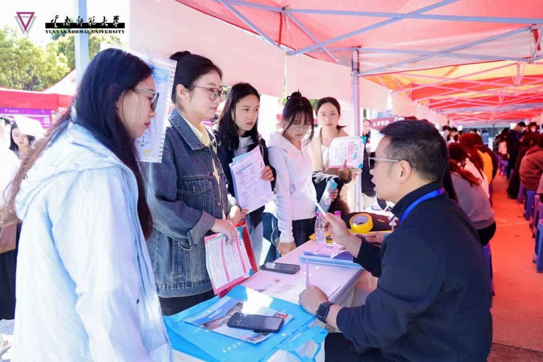 合肥师范学院的硕士研究生尹情艳说:“我这次来到云师参加招聘会,主要是想找到一份心仪的工作,招聘会为我们提供了快捷便利的求职机会。”“通过本次招聘会,我们了解了目前的就业市场,我们将对照相关岗位要求来提高自己的核心竞争力。”来自我校华文学院2023级本科生杨俊璘、沈妍姝感慨道。